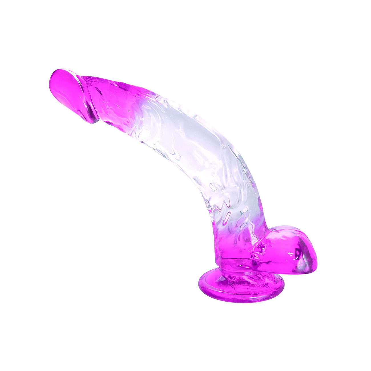 Valmiiksi kaareva, läpinäkyvä ja imukupilla varustettu tekopenis