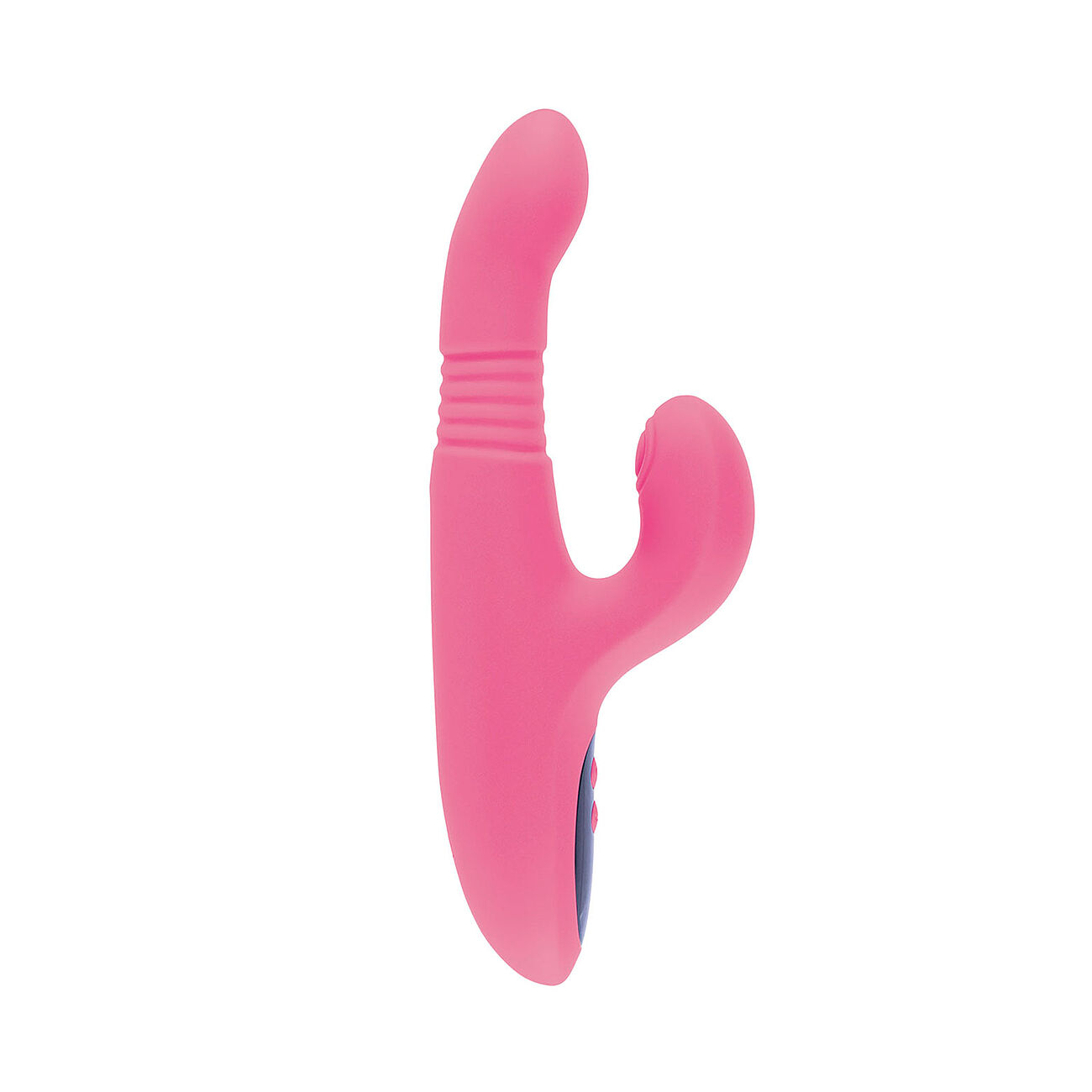 Twice The Joy-vibraattori on jämäkän tuntuinen ja herkän vaaleanpunainen ja siinä on kaksi erilaista toimintoa: edestakainen liike sekä klitoriskiihottimen naputtava stimulointi. Tämä vibraattori sopii niin vagina- kuin anaalipenetraatioonkin.
