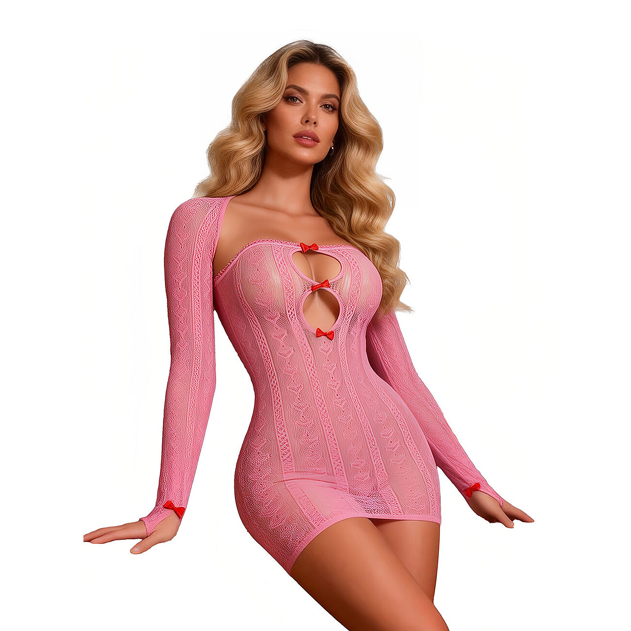 Etsitkö rohkeaa ja erottuvaa alusasumekkoa, joka yhdistää suloisen pinkin sävyn ja viettelevät yksityiskohdat? Tämä OhYeah-brändin pinkki pitsinen seksimekko on täydellinen valinta, kun haluat korostaa vartaloasi ja luoda asulla leikkisää sensuellisuutta. Punaiset rusetit tuovat asuun suloista leikkisyyttä, kun taas pitsi ja vartalonmyötäinen malli tekevät kokonaisuudesta viettelevän ja naisellisen. Peukaloaukolliset hihat eivät ole vain tyylikkäät - ne myös viimeistelevät kokonaisuuden modernilla, hieman rohkealla twistillä.