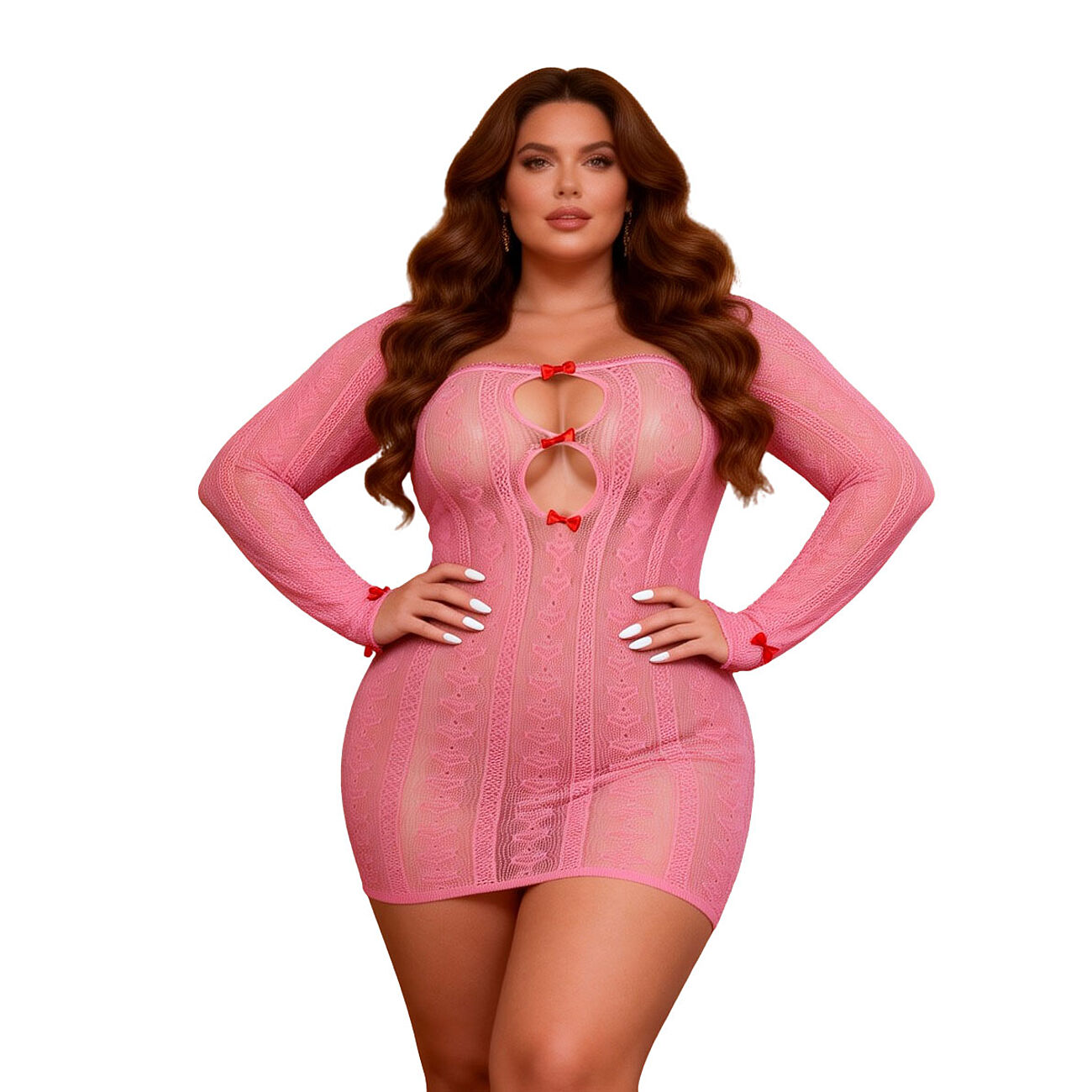 Tämä OhYeah-brändin seksimekko on täydellinen valinta, kun haluat korostaa vartaloasi ja luoda asulla leikkisää sensuellisuutta. Punaiset rusetit keskellä rintoja tuovat asuun eroottista leikkisyyttä. Suloisen pehmeä pitsi ja vartalonmyötäinen malli tekevät kokonaisuudesta viettelevän ja naisellisen. Peukaloaukolliset hihat eivät ole vain tyylikkäät, sillä ne myös viimeistelevät kokonaisuuden modernilla, hieman rohkealla twistillä.