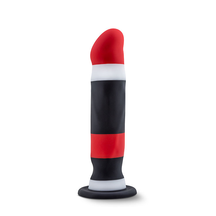 Klassiset seksin ja draaman värit - punainen, valkoinen ja musta - korostavat raitoina artesaanidildon muotoa ja vievät huomion erityisesti sen pulleaan, päästä kapenevaan kärkeen sekä tyven kapeaan osioon, josta on kätevä pitää kiinni ja joka tuo upeasti esiin loppusauvan houkuttelevan tanakkuuden.