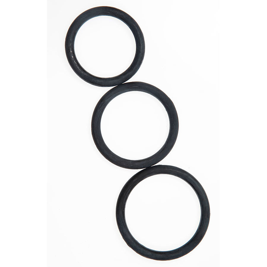 Pakkauksessa on kolme joustavaa ja erikokoista kumirengasta.