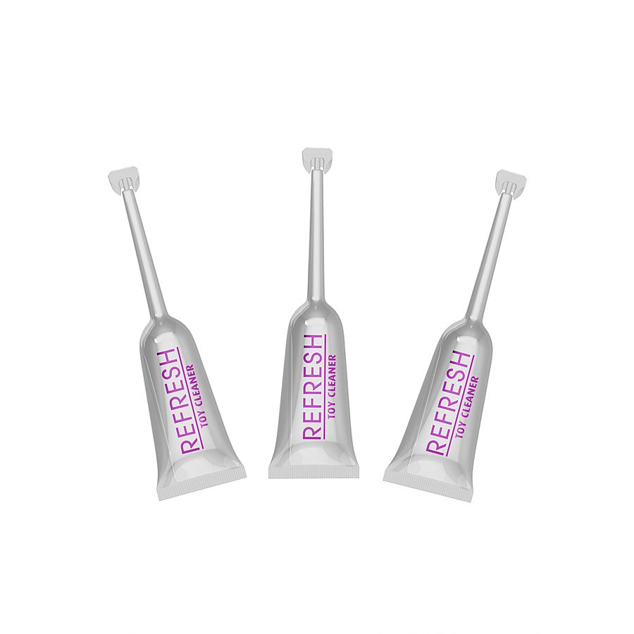 King Cock Refresh puhdistusainepakkaus sisältää kolme pitkänokkaista asetinta, joiden sisällä on n. 10 ml seksivälineille tarkoitettua puhdistusainetta. Kyllä on kätevää!