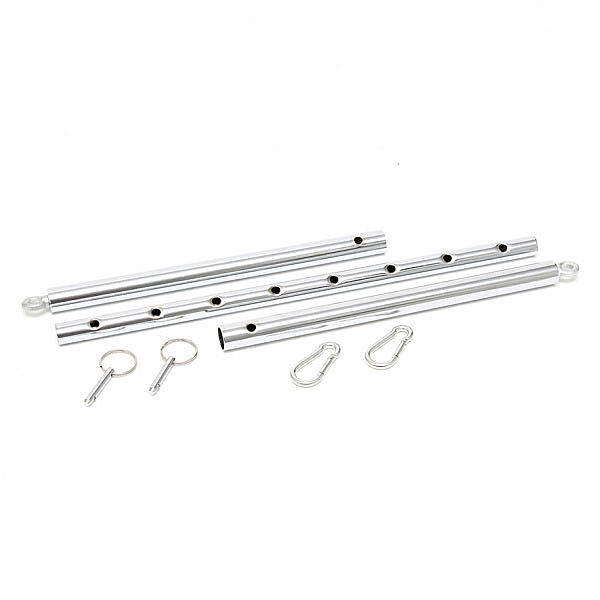 Kromipäällystetty metalliputki levittää kädet tai jalat riittävän kauaksi toisistaan! Metalliputken päissä on metallirenkaat, joihin saa kiinnitettyä pikalukituksella olevat karabiinikoukut (pakkauksen mukana). Karabiinikoukkujen ansiosta käsi/jalkakahleiden kiinnittäminen putkeen on helppoa. Levittäjä on säädettävissä 55 - 85 sentin välillä.